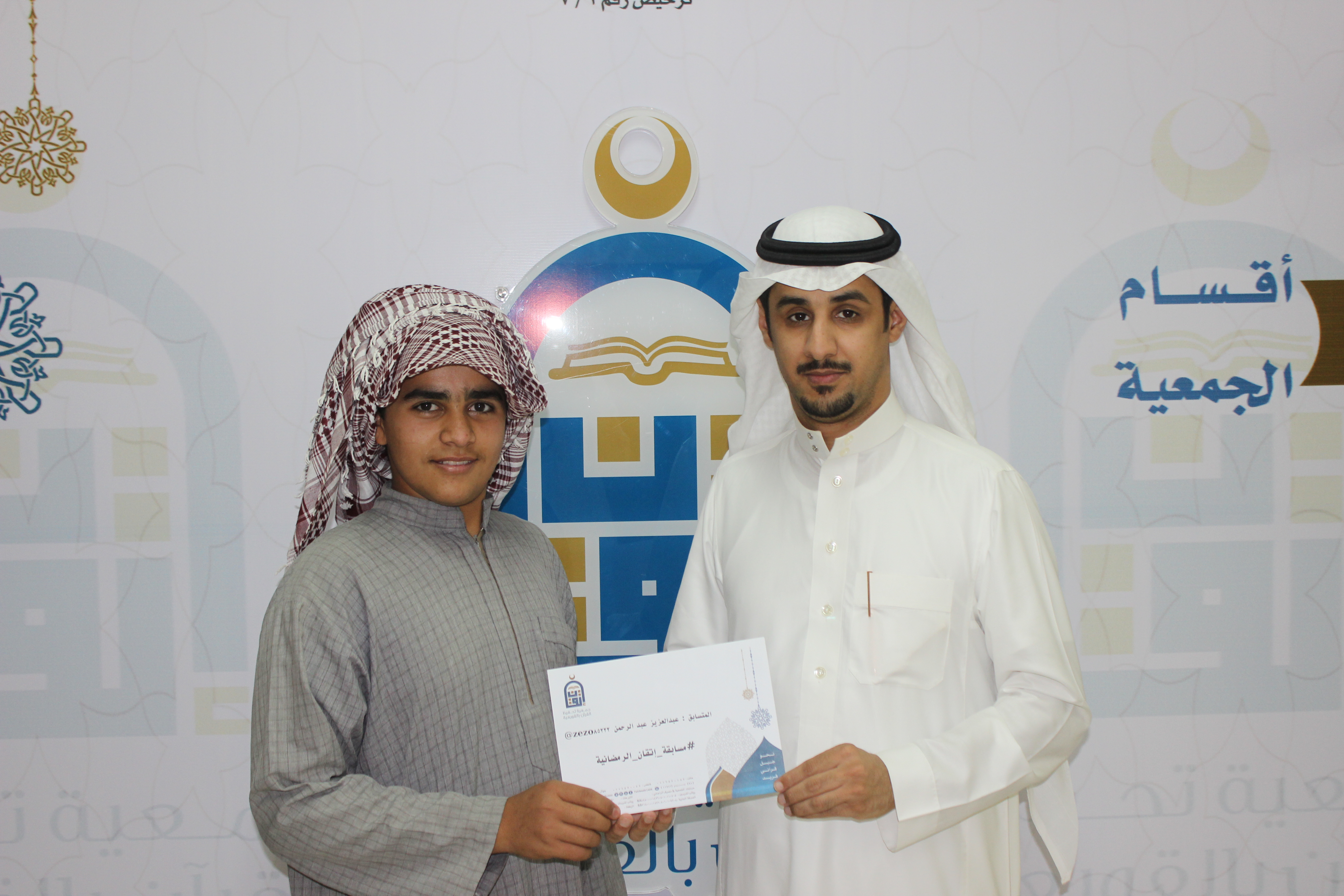 بحمد الله وتوفيقه تمّ توزيع جوائز مسابقة التّميّز على الفائزين بها خلال الفصل الدّراسي الأوّل وعددهم ١١٩ طالبًا وقام فضيلة الشيخ / محمد بن عبدالرحمن الهويمل ورئيس الجمعية الشيخ / إبراهيم بن سعود الشقي