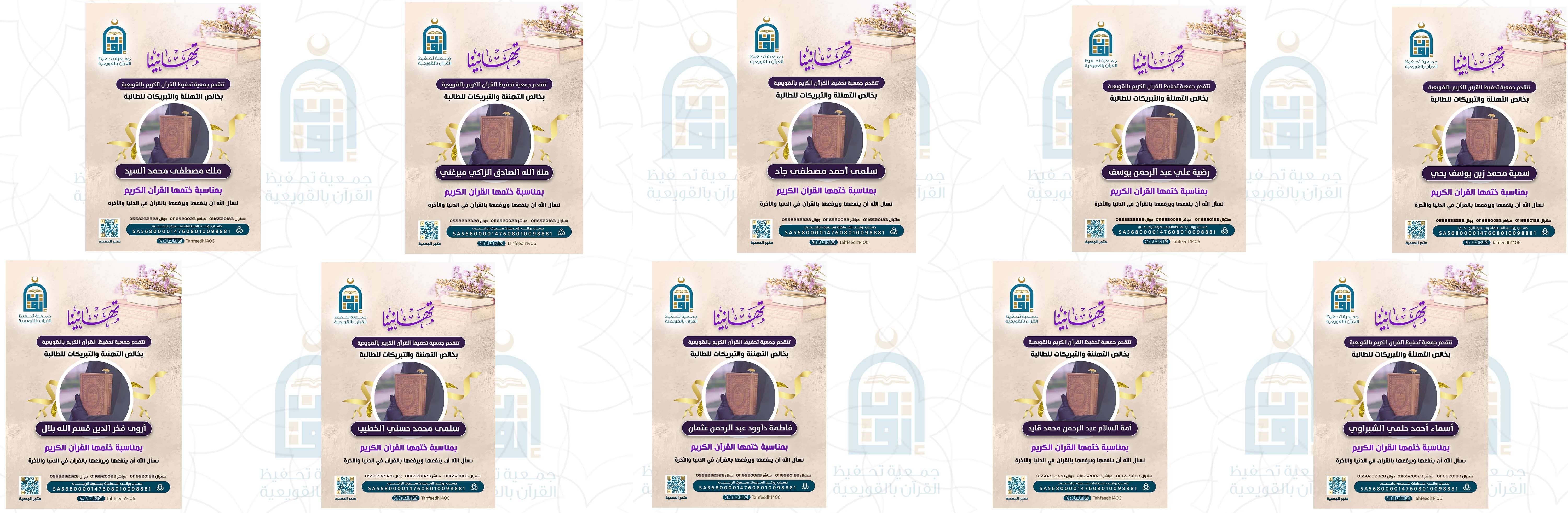 بفضل الله ومنته قسم الشؤون التعليمية بجمعية تحفيظ القرآن الكريم بمحافظة القويعية الفرع النسائي يكرم عشر خاتمات من طالبات الجمعية لختمهن كتاب الله خلال عام 1446 هـ داعيين الله ان يرفع بالقرآن