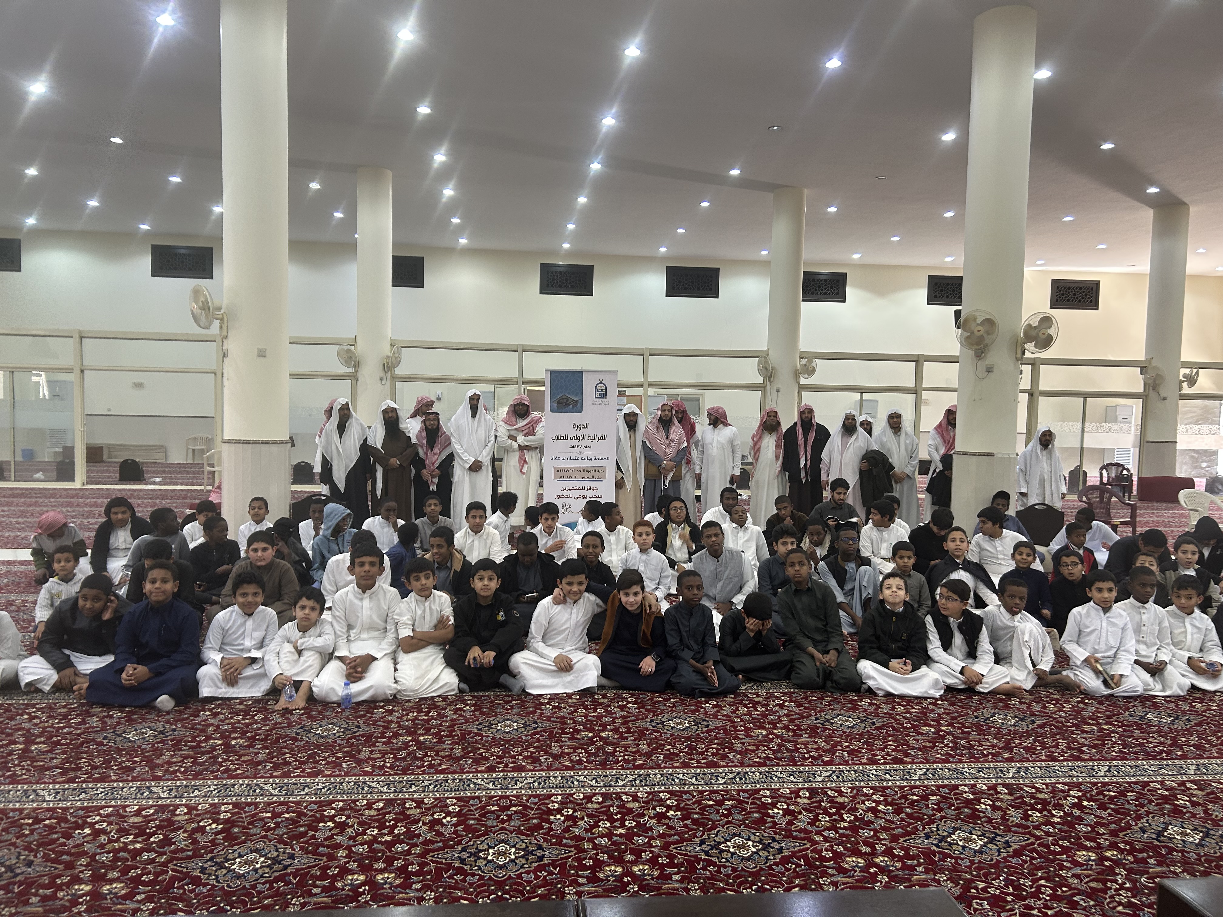 بحمد الله اختتمت الدورة القرآنية الأولى للطلاب المقامة بجامع عثمان بن عفان والتي أقيمت من يوم الأحد 6/2/ 1447 هـ حتى الخميس 1447/6/6هـ ، بحضور 135 طالباً ، وكان عدد أوجة المراجعة 19015 وجهاً ، وعدد أو