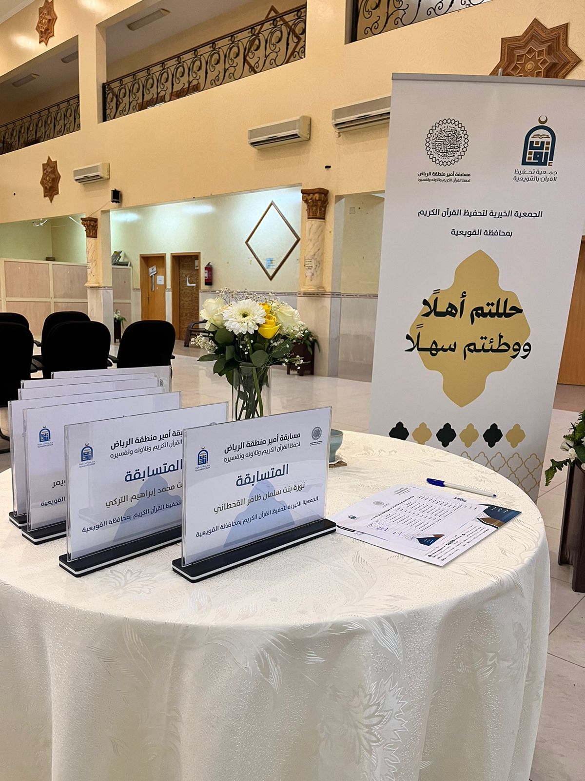 انطلقت صباح يوم السبت 19 /8 /1447 هـ التصفيات الثانية لمسابقة أمير منطقة الرياض لحفظ القرآن الكريم وتلاوته وتفسيره للبنات والتي تستضيفها جمعية تحفيظ القرآن الكريم (إتقان) بمحافظة القويعية ،تأكيدًا على ماتوليه قيادتنا الرشيدة أيدها الله من اهتمام بالغ بكتاب الله ودعمٍ مستمر لمسيرة حفظه وتعليمه.»