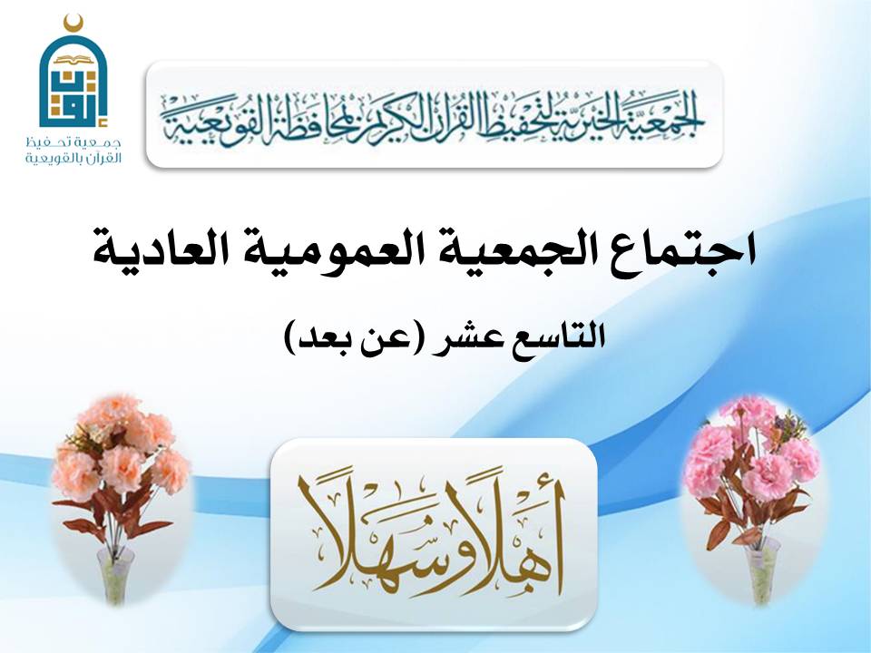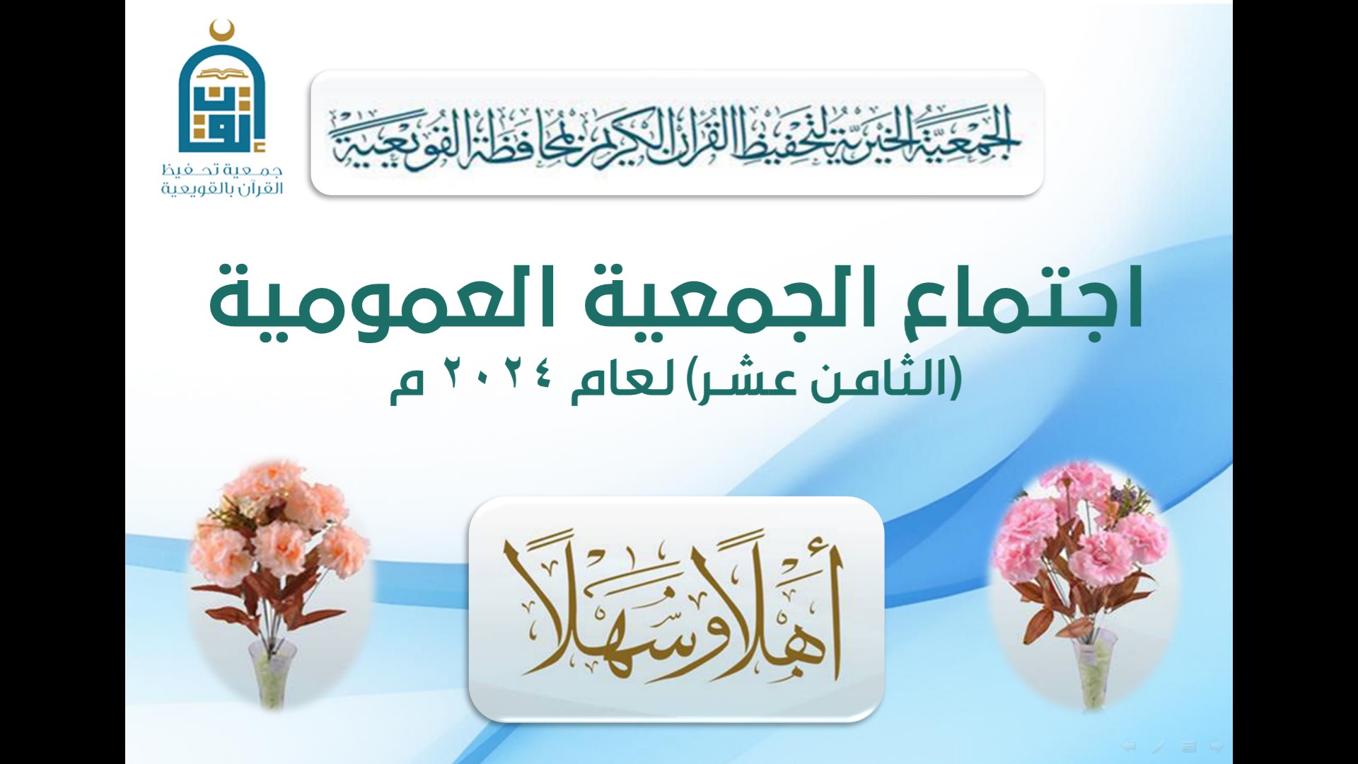 عقدت الجمعية الخيرية لتحفيظ القران الكريم بالقويعية اجتماع الجمعية العمومية العادي رقم 19 يوم الأربعاء الموافق 1446/11/02هـ الموافق 2025/04/30م (عن بعد ) وناقش المجتمعون تقرير مجلس الإدارة لأعمال وأنش