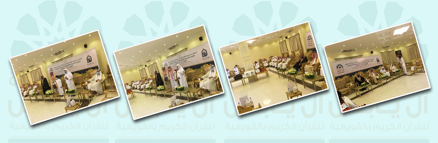 تم بحمد الله على شرف محافظ القويعية الأستاذ/ مساعد السالم تكريم الفائزين بجائزة آل يابس للقرآن الكريم في عامها الخامس بقصر آل يابس وذلك بعد مغرب يوم الإثنين 1442/11/25هـ بحضور رئيس الجمعية الخيري