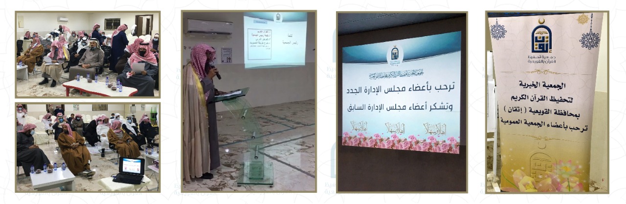 عقدت الجمعية الخيرية لتحفيظ القرآن الكريم بمحافظة القويعية ( اتقان ) جمعيتها العمومية لإنتخاب وتشكيل مجلس إدارة جديد وذلك مساء يوم الأحد 29 / 5 / 1443هـ بدار رفعة بحي الربوة بحضور ممثلي مركز التنمية ا